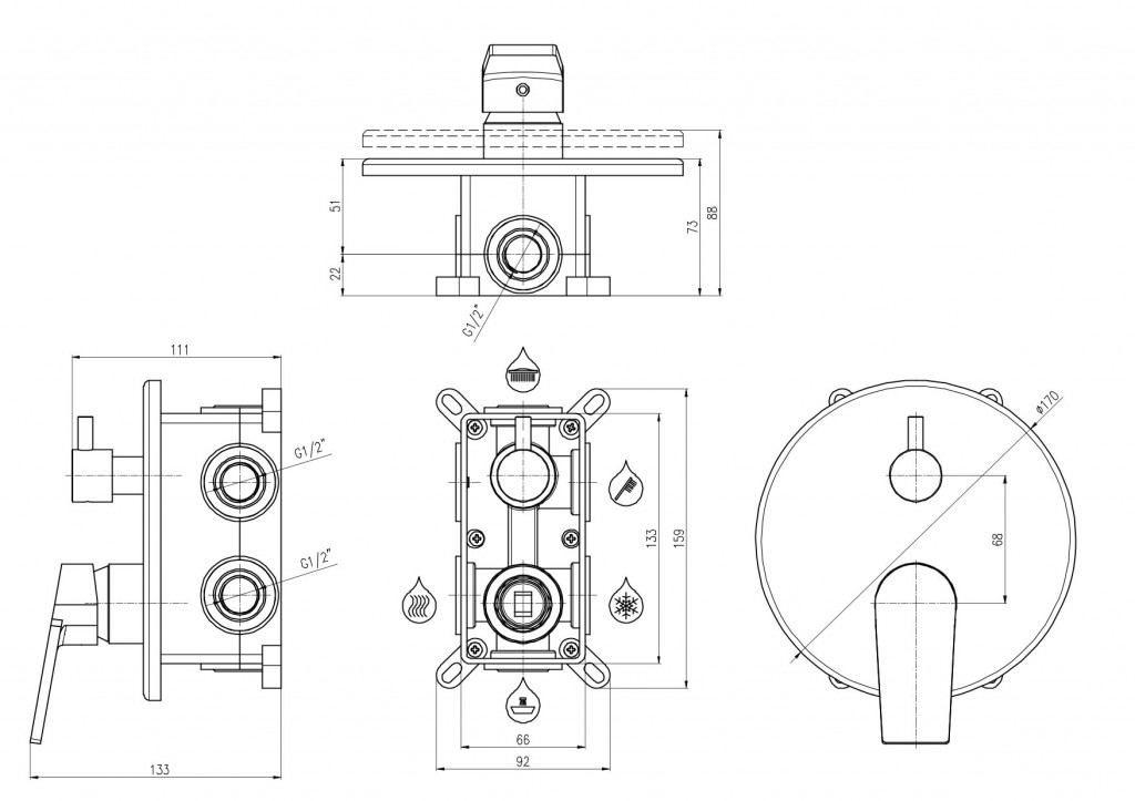 Túto batériu môžete použiť buď do sprchového kúta ako kombináciu troch prvkov alebo k vani ako kombináciu napr. napúšťanie prepadom, ručná sprcha a hlavová sprcha alebo výtokové ramienko, ručná sprcha a hlavová sprcha.