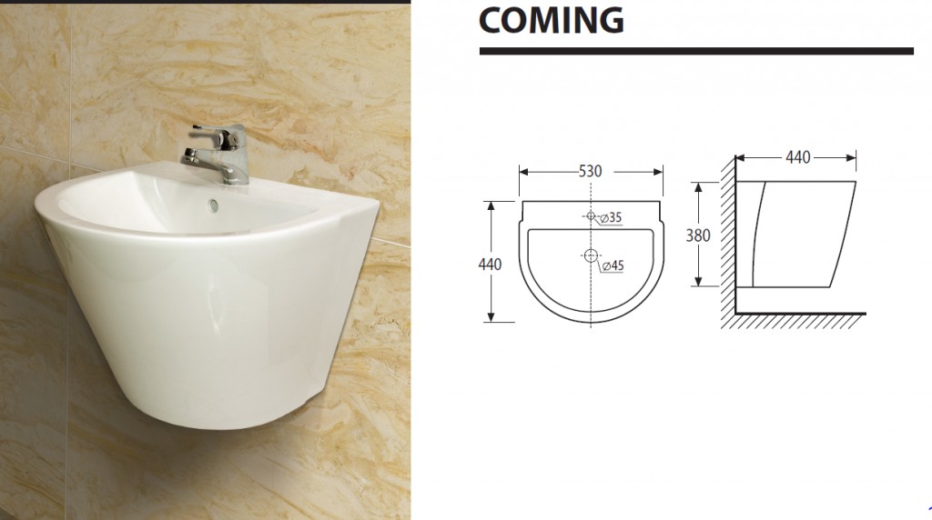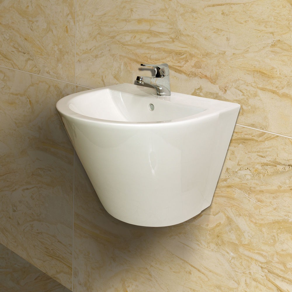 Závesné keramické umývadlo s otvorom pre batériu, vrátane montážnej sady.