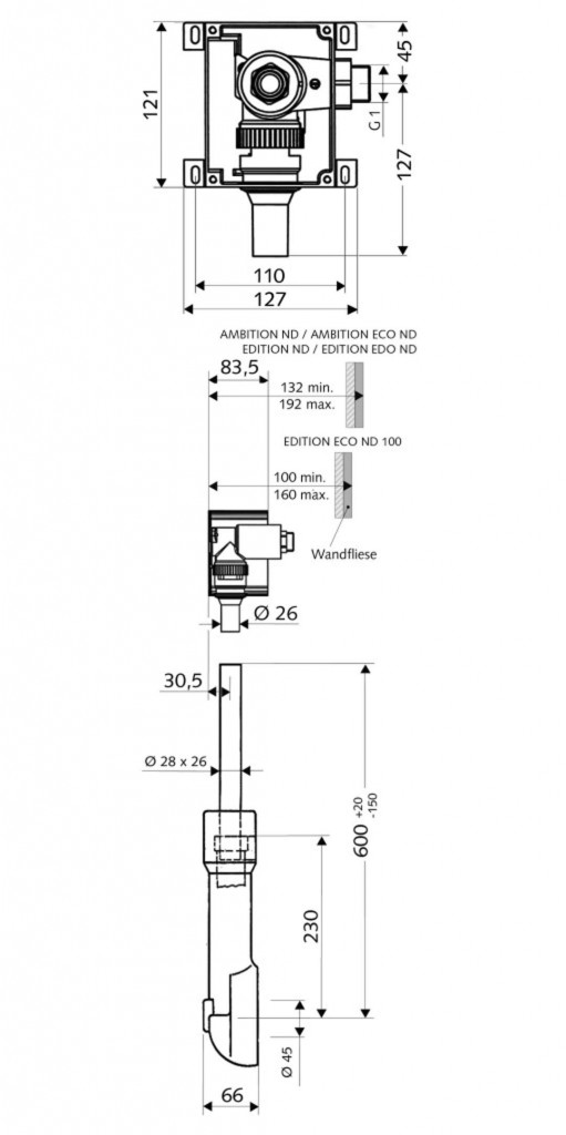 Nehlučná podomietková splachovacie armatúra s preduzávery k ovládanie ovládacie doskou WC EDITION ND.