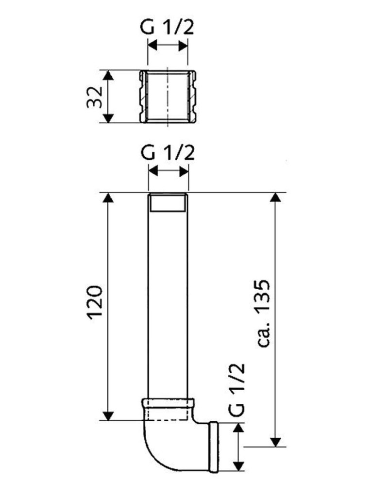 - Prípojné rúrka 120mm s uhlom 90 ° G 1/2 IG zatesnenia