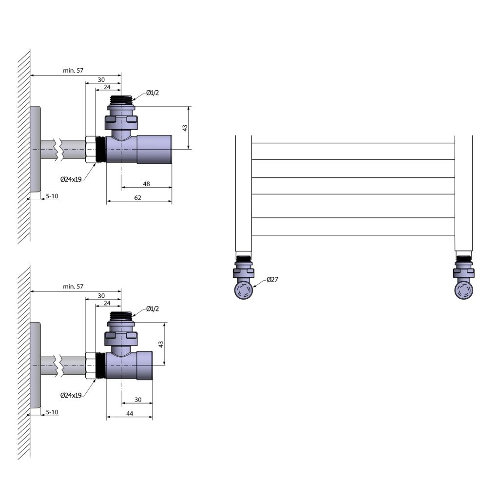 Nami ponúkané pripojovacie ventily sú dodávané vrátane zverného šróbenia na najbežnejšie potrubie (Ø15 mm Cu a Ø16 mm Alupex), pre dopojenie tak nie je potrebné nič dokupovať. Pre zakrytie prívodných rúrok a otvorov v múre odporúčame prikúpiť krycie rozety.
