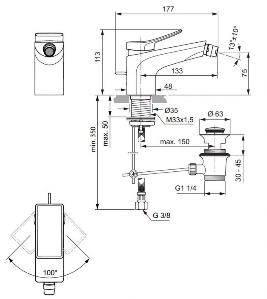 Páková bidetová batéria s výpusťou