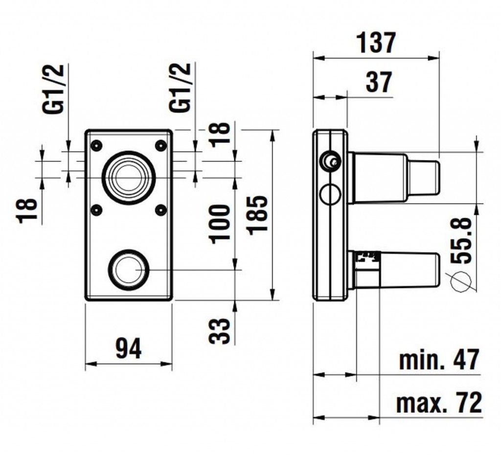 - hĺbka zabudovania: 47-72 mm