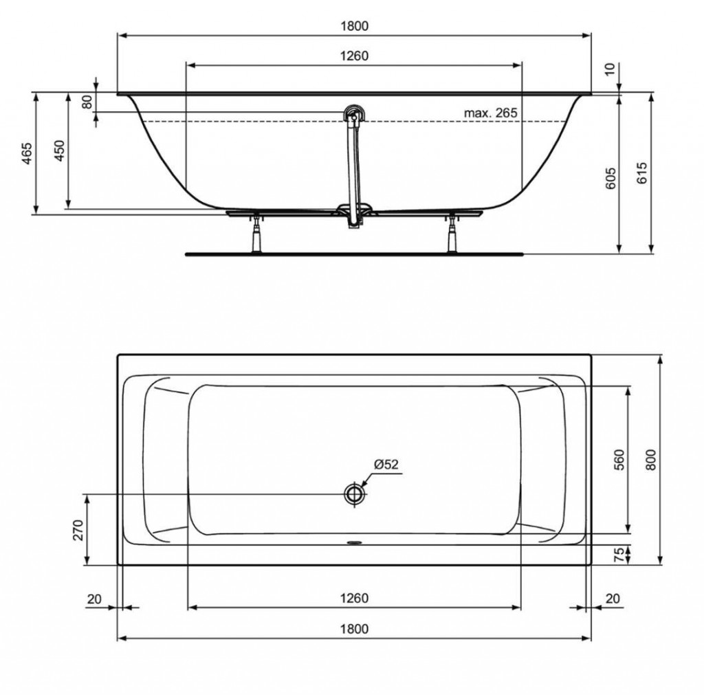 Nožičky a odtoková súprava nie sú súčasťou dodávky.