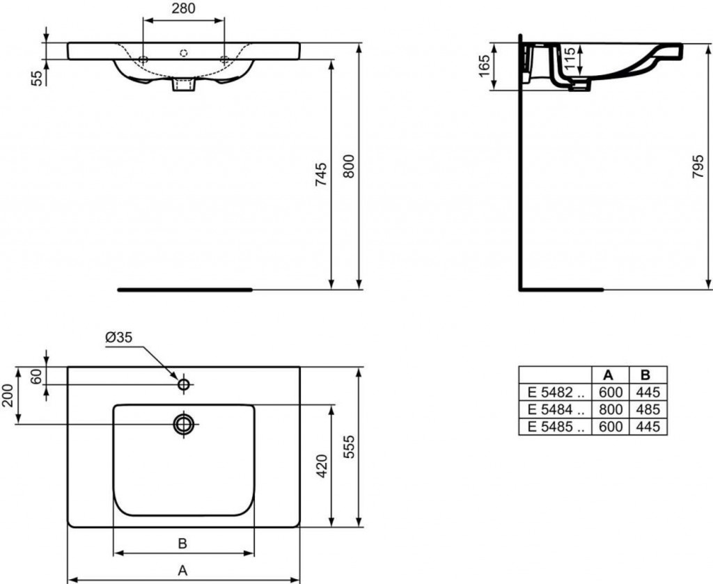 1 otvor pre umývadlovú batériu, bez prepadového otvoru.