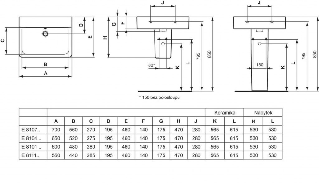 - pre kombináciu s dizajnovým sifónom, polostĺpom alebo stĺpom