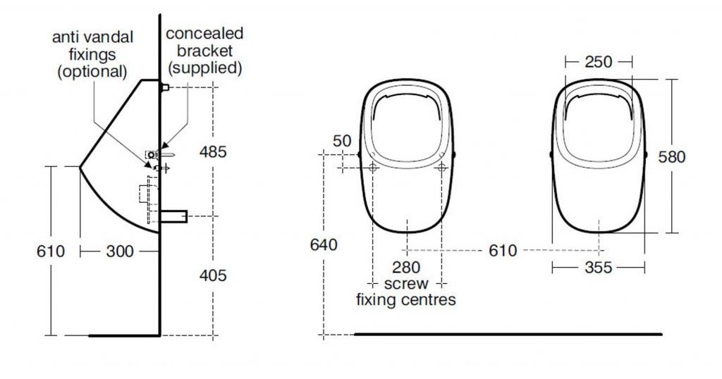 Pisoár Jasper Morrison so skrytým prívodom vody