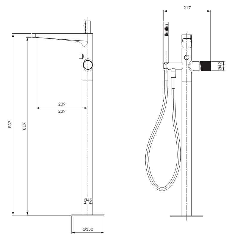Vaňová stojanková batéria do priestoru je vyrobená z kvalitnej mosadze triedy A a je vybavená najkvalitnejšou keramickou kartušou, ktorá zaisťuje plynulé a presné riadenie prietoku vody. Technológia trysiek EASY CLEAN umožňuje užívateľovi ľahko odstrániť usadený vodný kameň jednoduchým utretím ich silikónového povrchu a vďaka perlátoru AIR WATER je voda mäkká a príjemná na dotyk.