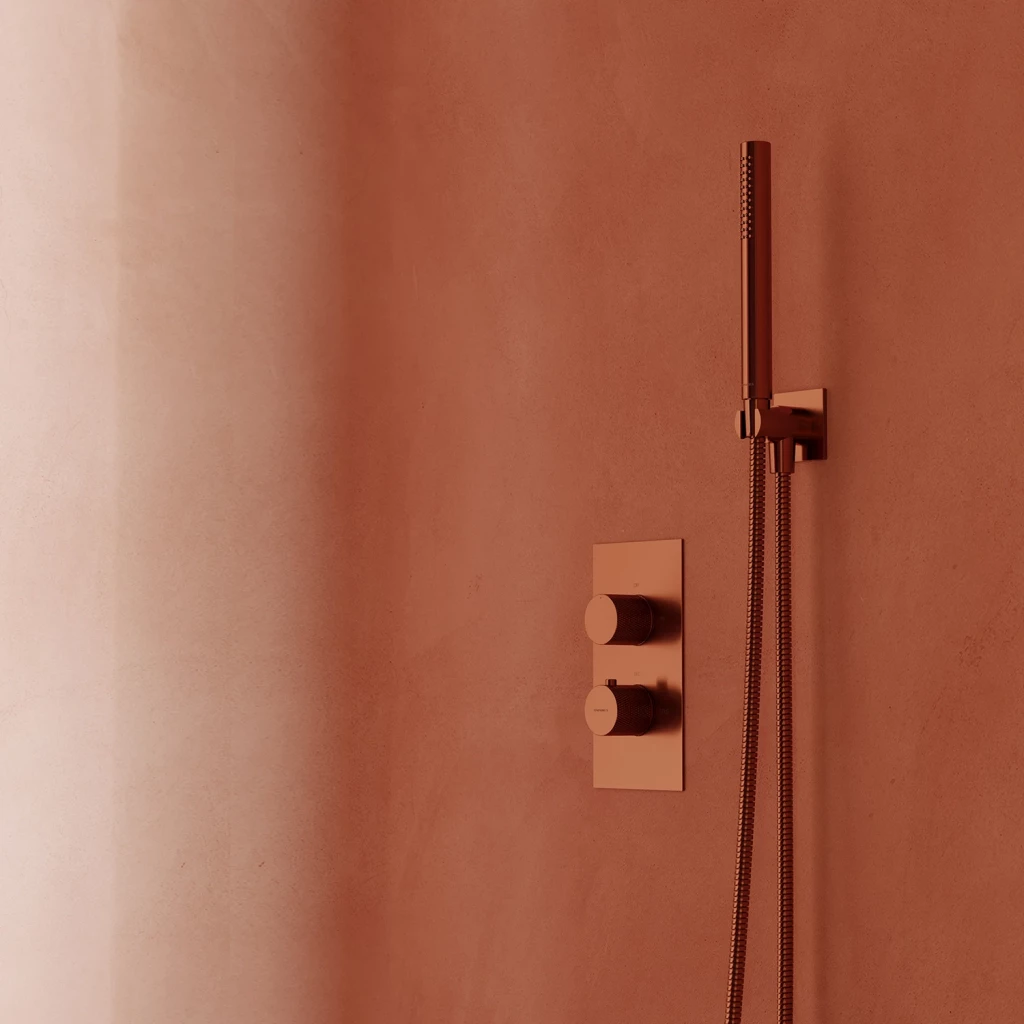 Podomietkový sprchový set je vyrobený z vysoko kvalitnej mosadze triedy "A" a vybavený najkvalitnejšou termostatickou kartušou so zámkom 38 °C. Kartuša chráni pred náhlymi zmenami teploty a zaručuje pohodlné používanie batérie po roky. Hlavová sprcha bola vytvorená pomocou technológie ANTI-SCALE /vnútro je lemovaný silikónovým povlakom, ktorý zabraňuje hromadeniu vody/. Silikónové výstupky typu EASY CLEAN umožňujú vyčistiť hlavovú a ručnú sprchu od usadenín vodného kameňa jednoduchým a rýchlym utretím rúk.