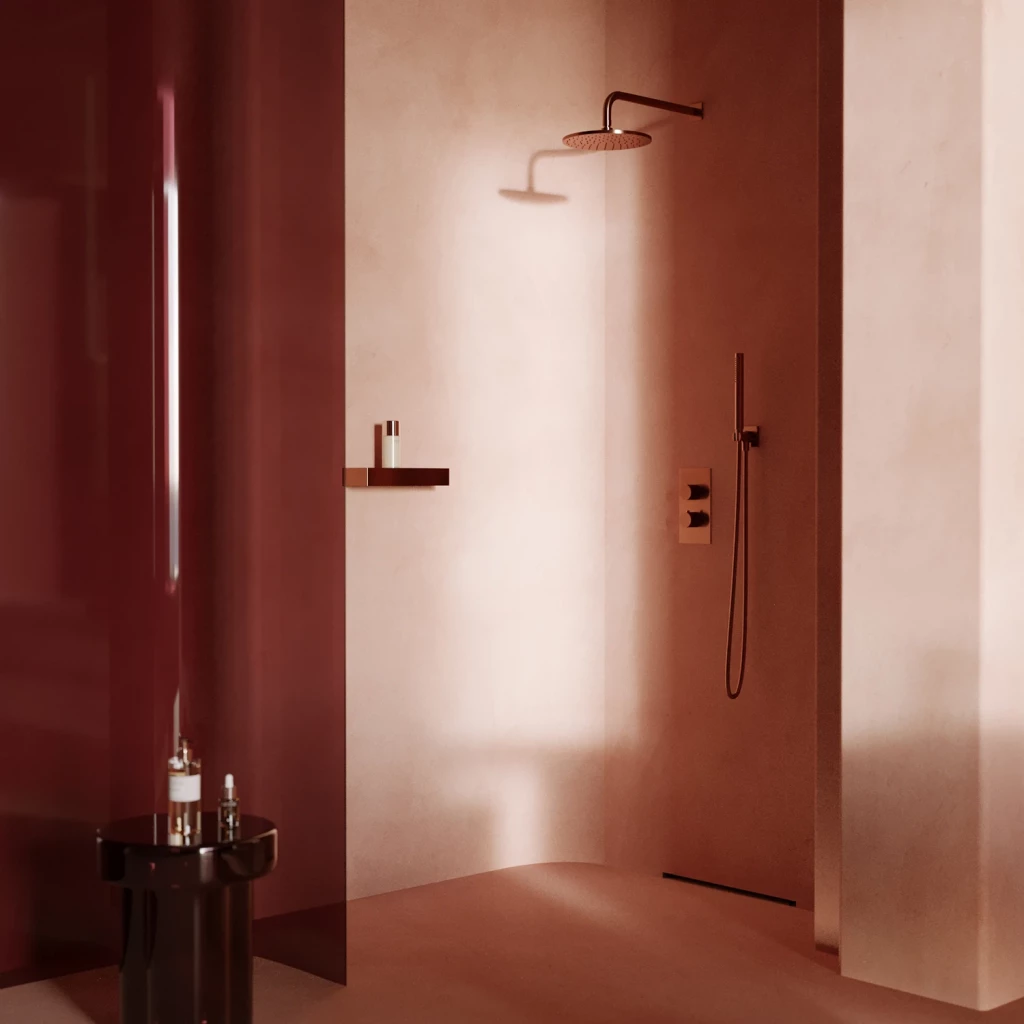 - mosadzné sprchové rameno (RA01C/KCPB), prípojka vody: 1/2", pripojenie dažďovej sprchy: 1/2"