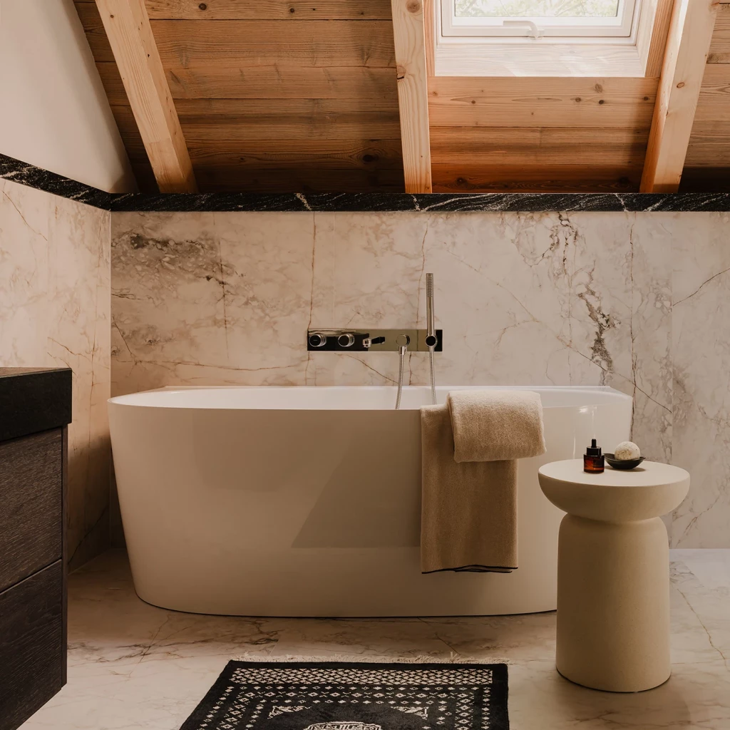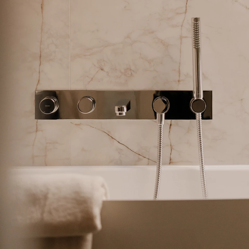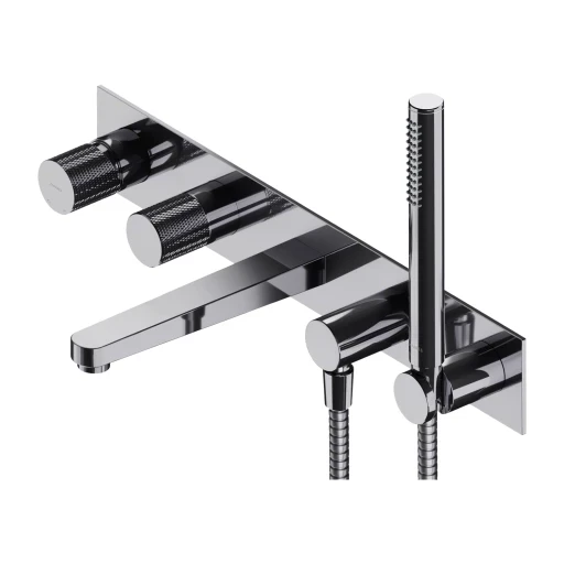 Podomietková vaňová batéria z kolekcie OMNIRES CONTOUR s integrovanou sprchovou rukoväťou zaujme svojim extravagantným tvarom a dekoratívnymi detailmi. Minimalistický architektonický dizajn s diamantovým frézovaním zaujme rafinovanou kombináciou textúr a dokonalým spracovaním. Symetrický tvar batérie dokonale ladí s vaňou a vytvára harmonickú kompozíciu. Podomietková inštalácia zaručuje úsporu miesta a ľahké čistenie.