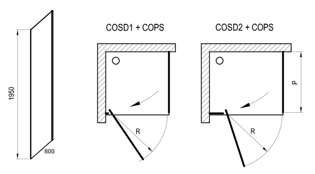 - pre kombináciu so sprchovými dverami COSD1 alebo COSD2