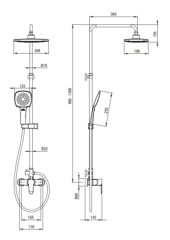 - Nastaviteľná výška dažďovej sprchy