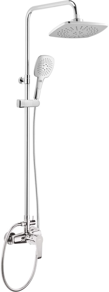 Sprchový set so zmiešavacou batériou série Corio, ktorá ponúka kúpeľňové aj kuchynské batérie v klasickom lesklom chrómovom prevedení, je produktom určeným nielen pre formálnosť a pohodlie ale aj pre užívateľov malých kúpeľní. Táto prezentovaná sada sa skladá z 3-funkčnej ručnej sprchy, tyče a 2-funkčnej hlavovej sprchy, ktorá zaručuje príjemnú relaxačnú sprchu. Hlavová sprcha bude vyzerať obzvlášť atraktívne v kúpeľniach zariadených v modernom štýle, a to vďaka obdĺžnikovému tvaru ručnej sprchy a sprchovej hlavice a tiež elegantnému zakončeniu.