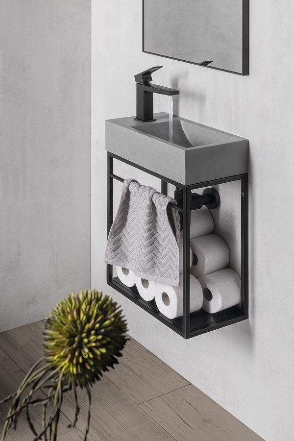 - Možno doplniť CREST konštrukcií s policou v čiernej farbe alebo umývadlovú skrinkou Latus X