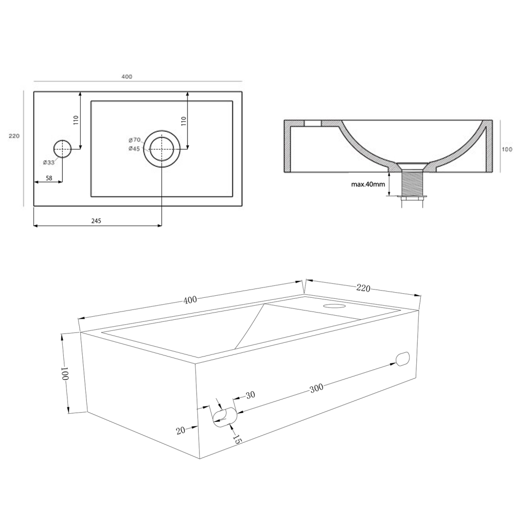 - Vrátane výpuste so zátkou vo farbe umývadla