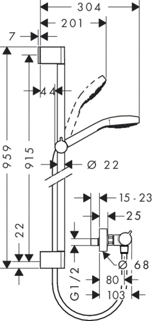 - nástenná tyč 0,90 m bez sprchovej hadice (# 26506000)