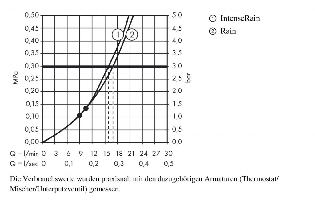 - prietok pri prúdu IntenseRain (pri 0,3 MPa): 16 l / min