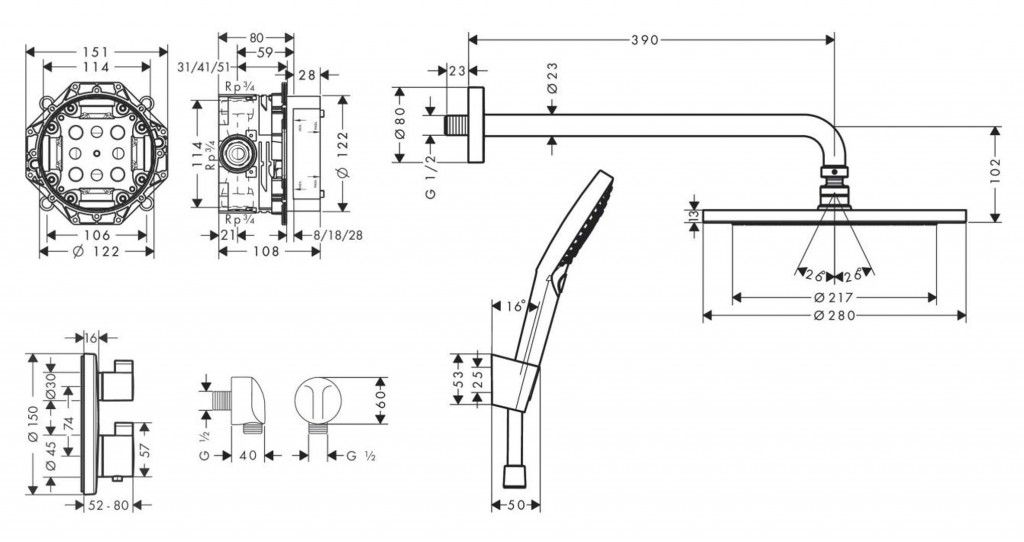 - vhodné pre všetky sprchové, vaňové a termostatové vrchné sady pre podomietkové inštalácie