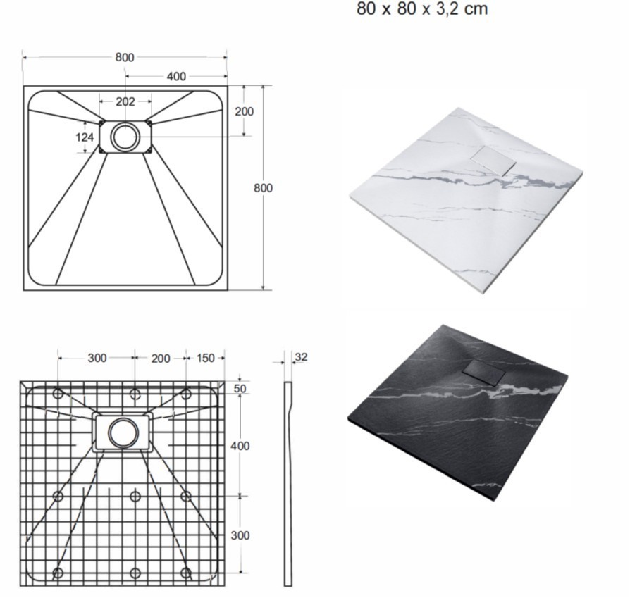 Rozmery a parametre štvorcovej vaničky VEXO MARBLE: