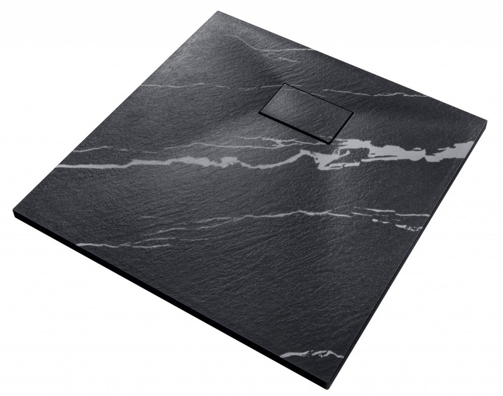 BESCO - Štvorcová sprchová vanička VEXO MARBLE - čierna - Farba - Čierna , Nožičky k vani - Bez nožičiek, Rozmer A - 80, Rozmer B - 80 (VANKVEX80CTVEMB)