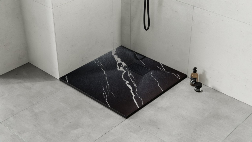 Elegantná ultratenká sprchová vanička VEXO MARBLE ČIERNA je vyrobená zo špeciálneho SMC materiálu. Dodáva sa vrátane sifónu ale bez nožičiek. K rytka sifónu vo farbe vaničky je súčasťou balenia.