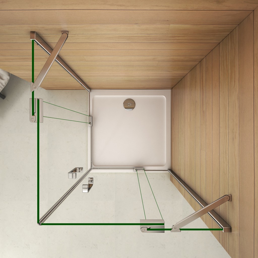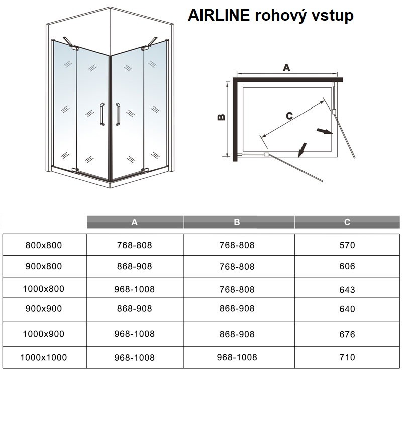 Štvorcový sprchovací kút AIRLINE R808, 80x80 cm, s dvomi jednokrídlovými dverami s pevnou stenou, rohový vstup
