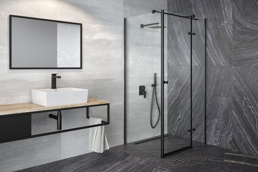 Luxusný čierny celosklenený štvorcový kút opatrený jednotnými závesmi a nástennou vymedzovacou lištou. Sprchová zástena PIXA štvorec je vyrobená z tvrdeného bezpečnostného skla s hrúbkou 6 mm , na ktoré je nanesená povrchová úprava . Táto úprava uľahčuje čistenie a minimalizuje ukladanie vodného kameňa. So svojou výškou 195 cm je možné kút inštalovať aj bez vaničky priamo na dlažbu.