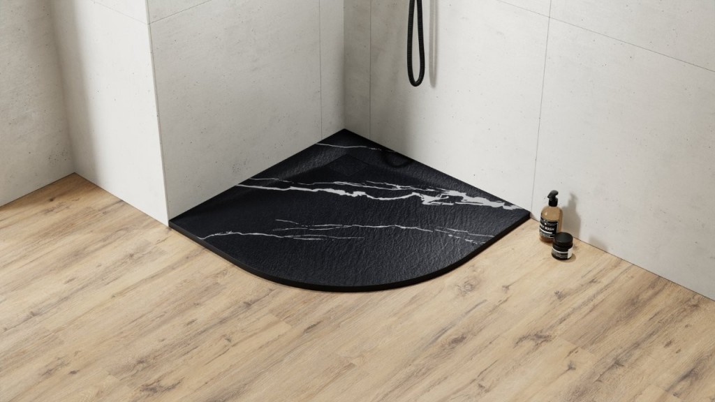 Elegantná ultratenká sprchová vanička VEXO MARBLE ČIERNA je vyrobená zo špeciálneho SMC materiálu. Dodáva sa vrátane sifónu ale bez nožičiek. Nerezová krytka a krytka sifónu vo farbe vaničky je súčasťou balenia.