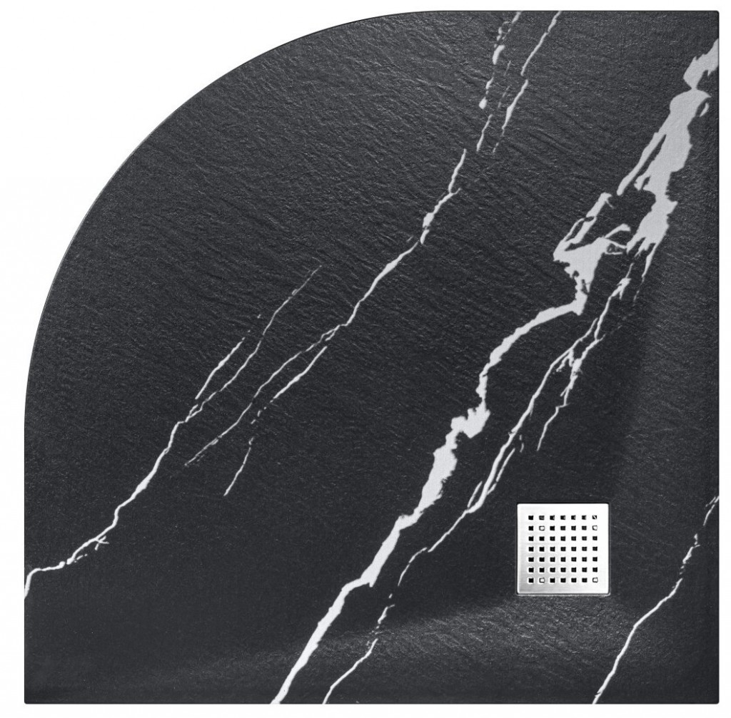 Sprchová vanička VEXO MARBLE ČIERNA , vyrobená z SMC materiálu, zaujme matnou úpravou v čiernej farbe s efektom mramoru a jemnou štruktúrou, imitujúcou prírodný mramor . V cene vaničky sú zahrnuté aj dve krytky sifónu a to vo farbe vaničky a nerezová krytka, a ďalej vaničkový sifón s priemerom 90 mm. Tvar sprchovej vaničky umožňuje inštaláciu na podlahu alebo v úrovni podlahy, čo umožňuje bezprahový vstup do sprchového priestoru. U vaničiek z SMC materiálu je možná rozmerová úprava ( možnosť rezania na mieru ).