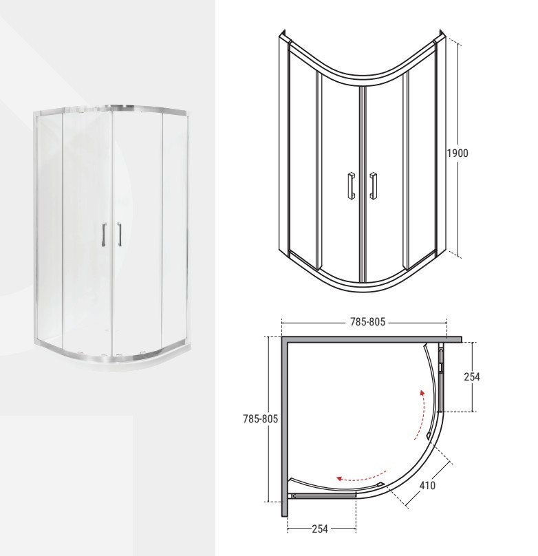 Štvrťkruhový sprchovací kút MODERN CHROM 190 vyniká vysoko kvalitným spracovaním a spoľahlivou funkčnosťou všetkých súčastí a materiálov.