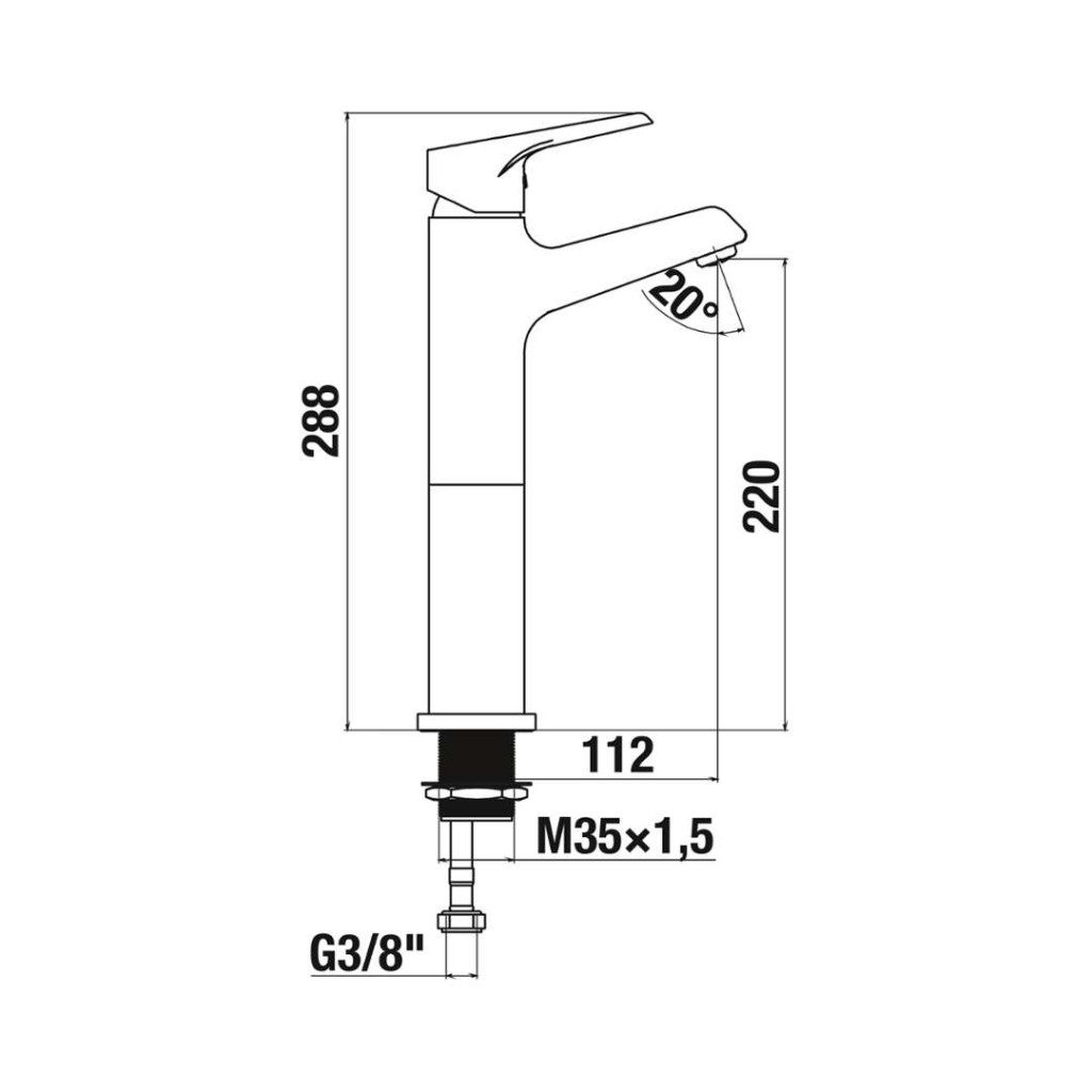 Stojánková umývadlová batéria pre umývadlové misy bez výpuste, prietok 5 l / min