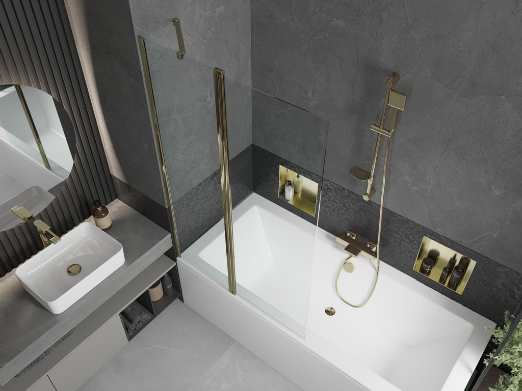 Zástena sa skladá z dvoch častí - pevnej steny a pohyblivého krídla