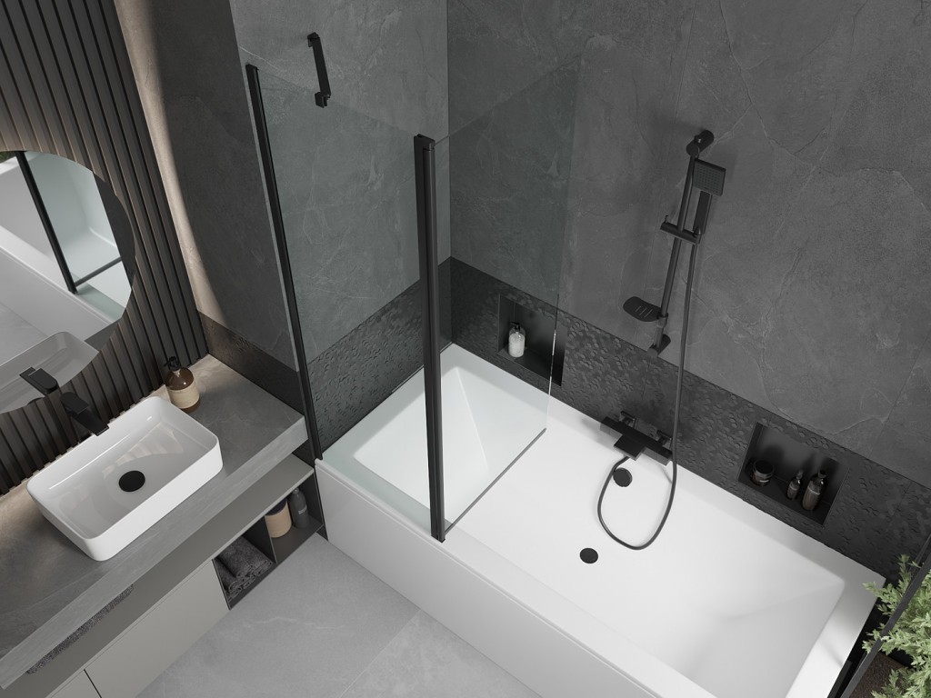 Zástena sa skladá z dvoch častí - pevnej steny a pohyblivého krídla