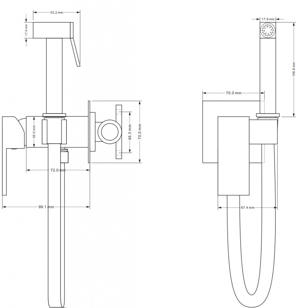 Nástenná, mosadzná podomietková bidetová batéria s keramickou kartušou s priemerom 25 mm z originálnej kolekcie CUBE výrobcu MEXEN bude dokonalým doplnkom kúpeľne zdobenej ďalšími prvkami z kolekcie. Táto jednopáková batéria je vybavená funkčnou bidetovou ručnou sprchou /jedna funkcia/ s vypínačom štart-stop, integrovanou s batériou pomocou 1,25 m dlhej sprchovej hadice. Tlačidlo štart/ stop umožňuje zapnúť a vypnúť prúd vo zvolenom čase, čo je nielen mimoriadne pohodlné, ale taktiež znižuje spotrebu vody. Bidetová spŕška zaručuje väčšiu funkčnosť batérie, pomáhajú udržiavať osobnú hygienu, rovnako ako udržiavať čistotu v kúpeľni.