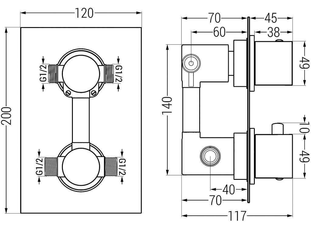 - pripojenie sprchy: 2x G 1/2" vstup a 2x G 1/2" výstup