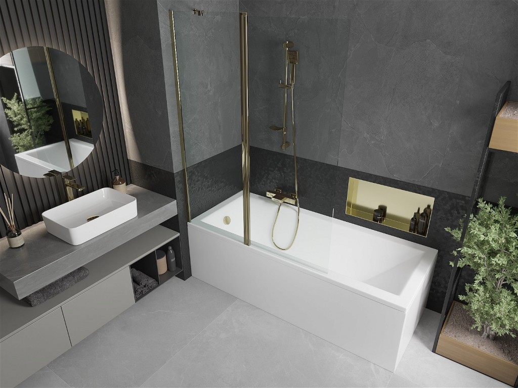Zástena sa skladá z dvoch častí - pevnej steny a pohyblivého krídla