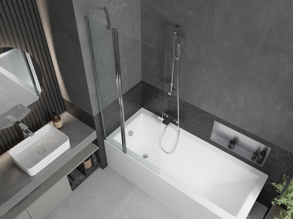 Zástena sa skladá z dvoch častí - pevnej steny a pohyblivého krídla