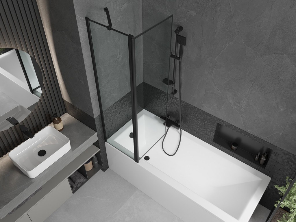 Zástena sa skladá z dvoch častí - pevnej steny a pohyblivého krídla