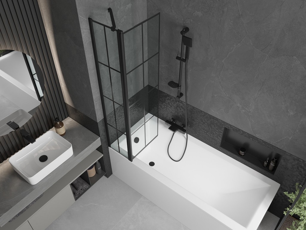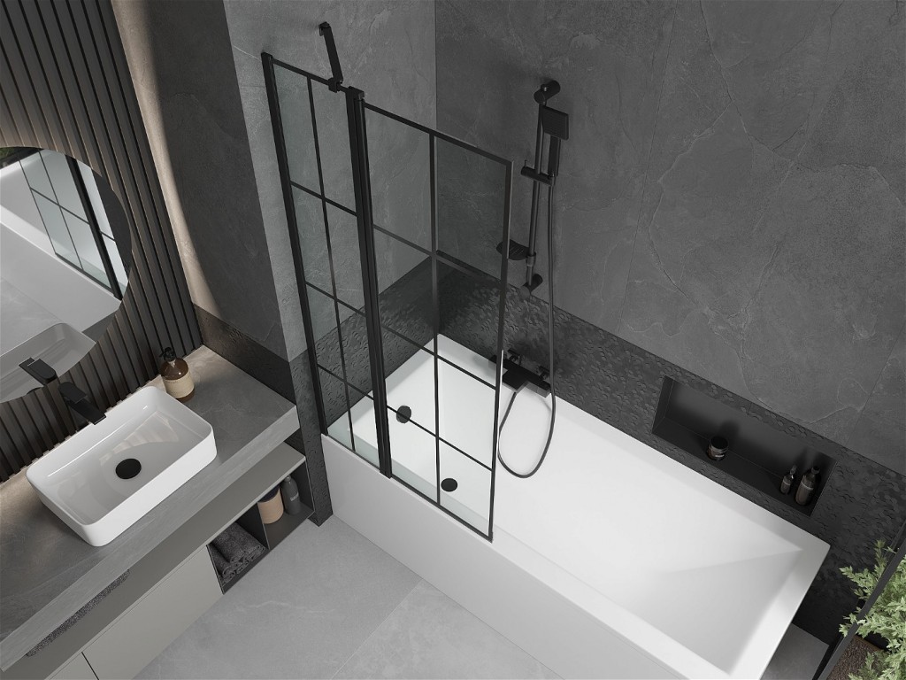 Zástena sa skladá z dvoch častí - pevnej steny a pohyblivého krídla