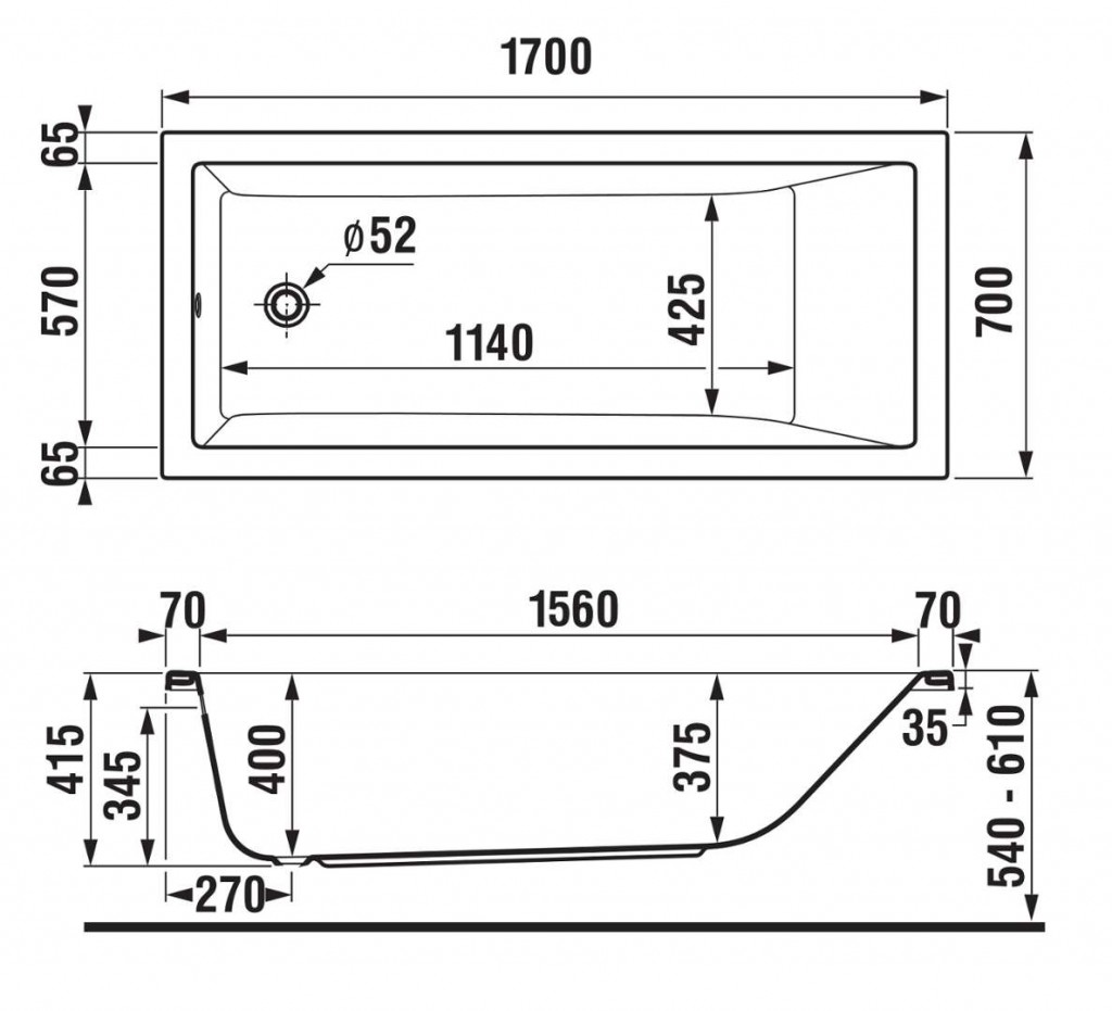 Nohy k vani a odtokovú súpravu je nutné objednať zvlášť.