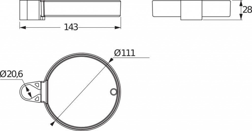 - dĺžka 143 mm, výška 28 mm