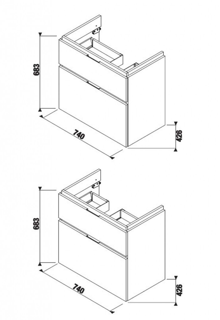Skrinka pod umývadlo 75 cm, 2 zásuvky, výrez vpravo
