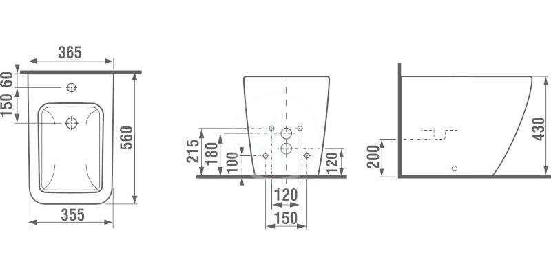 Bidet stojaci bez postranných otvorov pre prívod vody