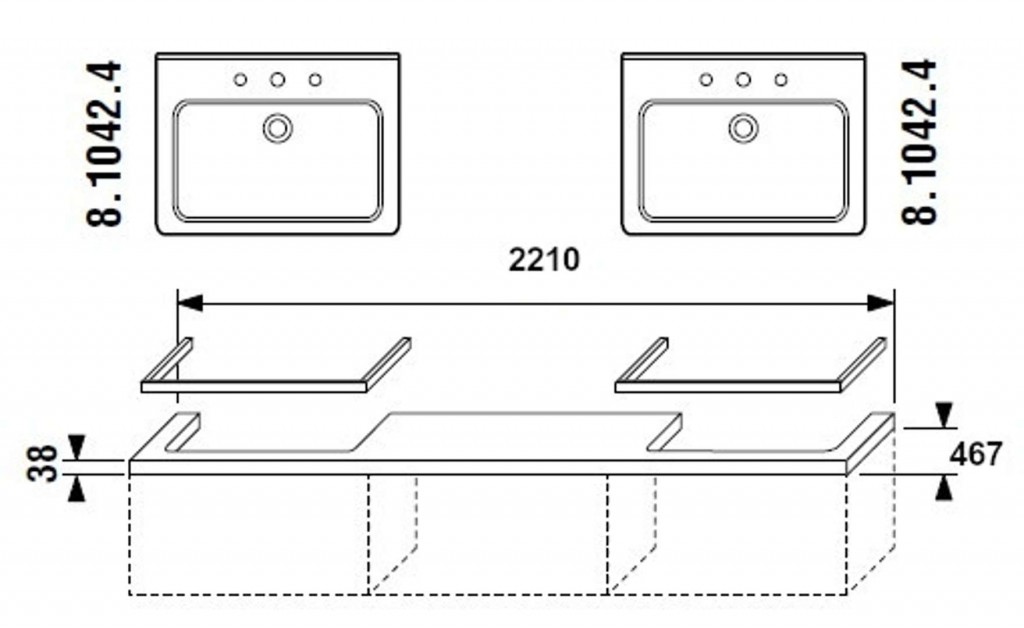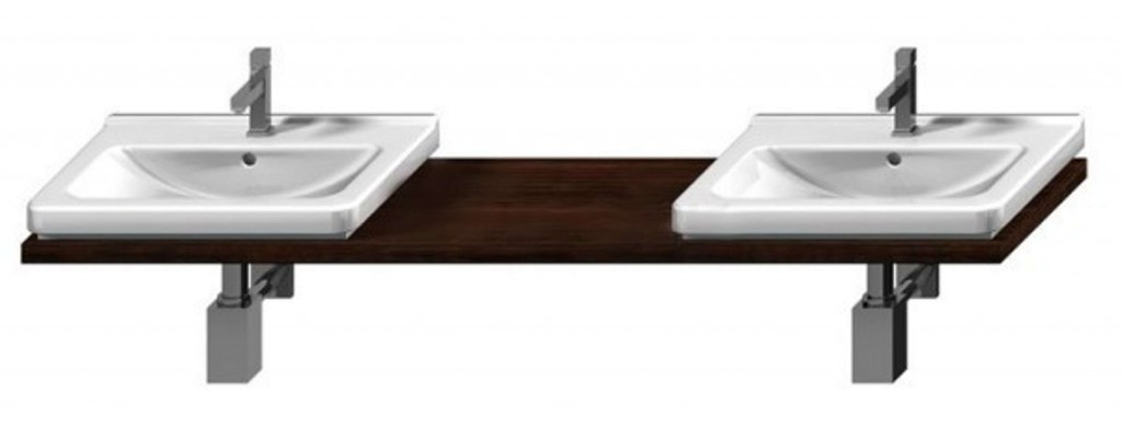 Atypická umývadlová doska 135-220 cm, pre umývadlo CUBITO 45-75 cm, 2 výrezy pre sifón 450155 vľavo/vpravo, bez podpier
