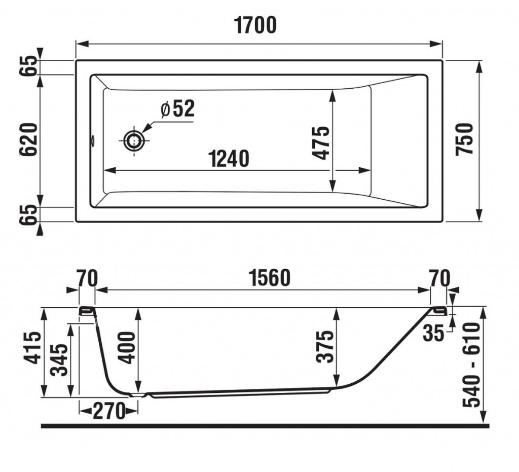 Nohy k vani a odtokovú súpravu je nutné objednať zvlášť.