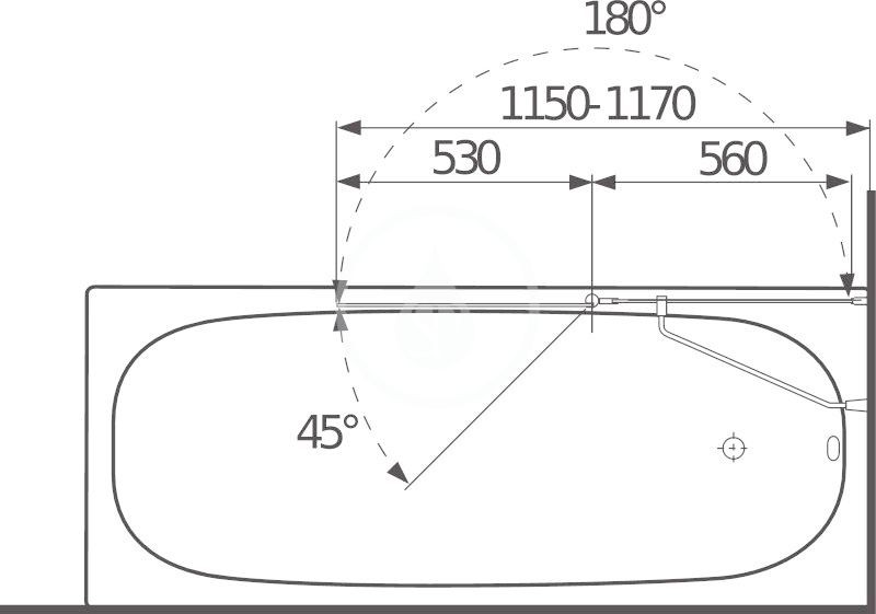 Vaňová zástena dvojdielna rozmer výška 1400 mm, šírka 1150 mm výplň 6 mm bezpečnostné sklo s povrchovou úpravou Jika Perla Glass dvojdielna strieborný lesklý profil ľavá varianta ilustratívne foto(GT) (celý popis)