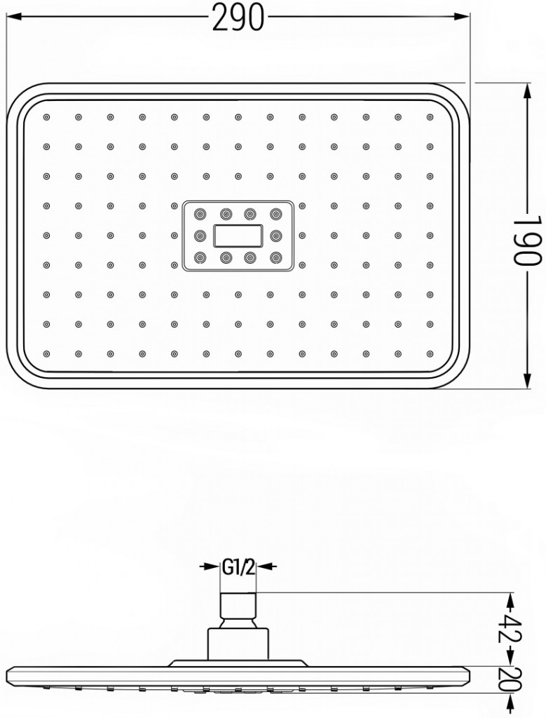 Hlavová sprcha D-49 s rozmermi 29x19 cm