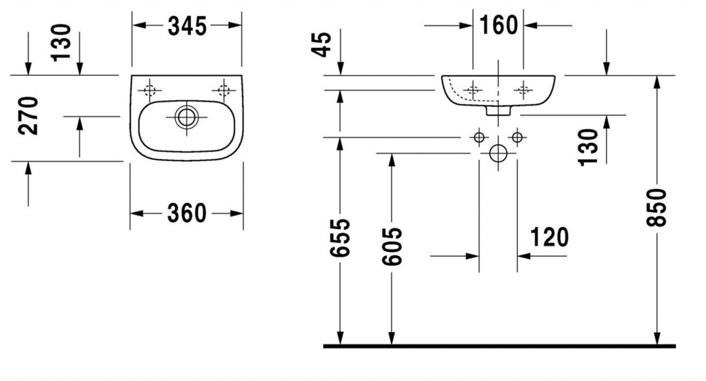 - s 1 otvorom pre umývadlovú batériu vpravo