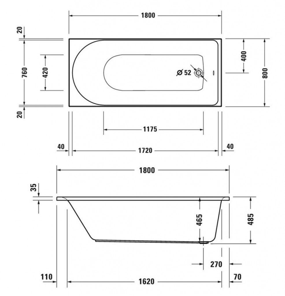 Odtoková súprava ani podpora vane nie sú súčasťou balenia, nutné dokúpiť zvlášť.
